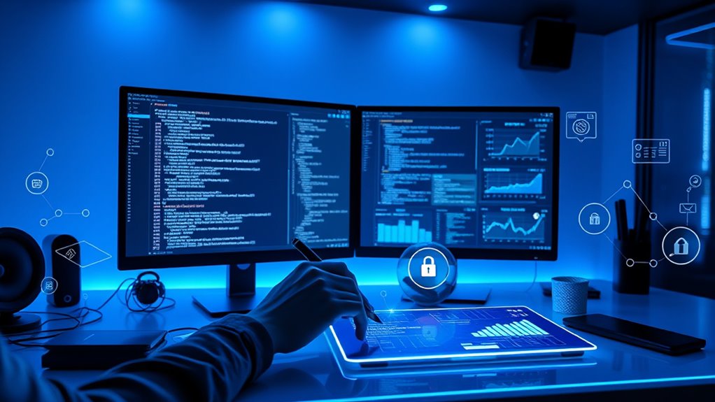 You’re playing with fire if you don’t choose the right tools. For integrating security into continuous testing, consider tools like Jenkins, GitLab CI, and CircleCI that support security automation and vulnerability scanning. These tools help catch vulnerabilities early, streamline security checks, and keep your pipeline secure. Automation minimizes manual effort, guarantees consistent security testing, and keeps your development cycle lean—giving you the edge to stay ahead of threats.
