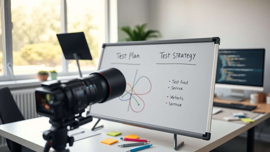 Think of your test plan and strategy as your agile team’s navigation map. You align them by incorporating flexible test automation and continuous risk assessment, allowing for quick pivots. During sprints, you adapt your approach based on feedback, ensuring both documents support iterative development. This dynamic alignment helps you catch issues early, reducing risks and keeping your project on track, much like adjusting course with real-time GPS updates.