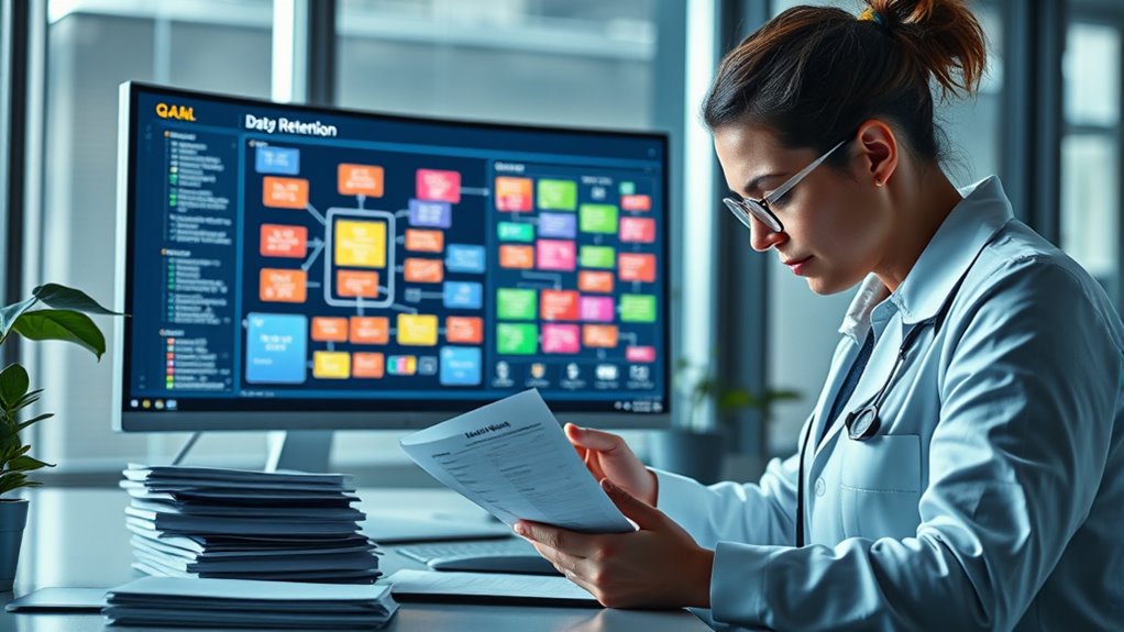 In practice, validating data retention policies through QA involves cross-referencing policies with actual data handling processes. You verify that encryption protocols are consistently applied across all systems storing sensitive information. You also test the audit trail’s reliability by simulating activities and checking whether they are accurately logged. This process helps uncover discrepancies or weaknesses—perhaps outdated encryption methods or incomplete audit logs—that could jeopardize compliance. Regularly updating encryption standards and maintaining detailed, tamper-proof audit trails demonstrate your organization’s commitment to safeguarding data and adhering to regulatory standards. Additionally, understanding the evolving landscape of data security helps ensure your policies remain relevant and effective in protecting sensitive information.