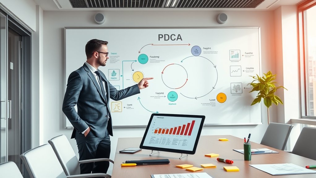 Like a well-oiled machine, industries such as manufacturing and healthcare benefit most from implementing PDCA. You can boost manufacturing efficiency and enhance healthcare safety by continuously refining processes, identifying issues early, and making data-driven improvements. PDCA’s cyclical approach helps you adapt quickly and sustain high quality, turning your operations into resilient, problem-solving engines. It’s the secret sauce to staying ahead in competitive, safety-critical fields.