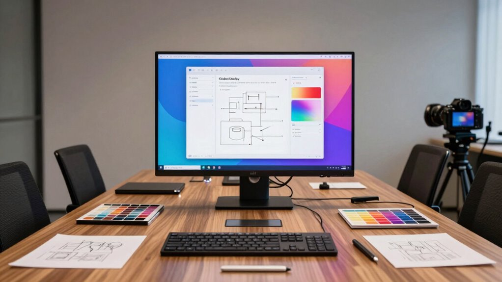 Using the right tools and templates can markedly speed up your UI review process while guaranteeing consistency. They facilitate design collaboration by providing a shared framework where team members can easily comment, suggest changes, and track revisions. Templates standardize review criteria, making feedback more structured and easier to compare across projects. Feedback automation tools help streamline the process by automatically flagging issues, reminding reviewers of deadlines, and consolidating comments into clear summaries. This reduces manual effort and minimizes miscommunication. By integrating these tools into your workflow, you create a more efficient review cycle that encourages clear communication and faster iteration. Consistent use of templates and automation ensures your team adheres to the Golden Display standard, fostering quality and uniformity.