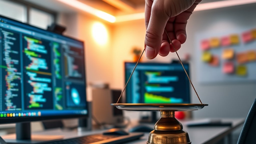 Did you know 60% of teams struggle with balancing speed and quality? You might fall into common pitfalls like neglecting thorough testing or rushing releases, which create trade-off dilemmas. Without proper risk management, quality suffers, and bugs slip through. To avoid this, prioritize automated tests and incremental releases, ensuring you move fast while maintaining high standards. Recognizing these pitfalls helps you make smarter decisions under pressure.
