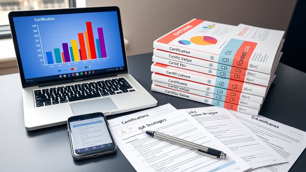 Certifications can lead to a salary boost and open doors for career growth by demonstrating your expertise and commitment. When you earn recognized QA certifications, employers see your skills as valuable, often resulting in higher pay and more advanced roles. Staying current with certifications also shows your dedication to professional development, making you a more competitive candidate for promotions and new opportunities, ultimately accelerating your career trajectory.