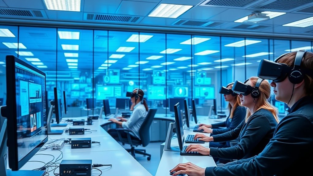 VR training labs are revolutionizing hands-on QA learning by immersing you in realistic environments where you can practice tasks safely and interactively. You’ll develop skills faster, gain confidence, and improve retention through active engagement and immediate feedback. The technology allows customization to match your specific needs, helping you troubleshoot and master techniques repeatedly. As VR continues evolving, it promises even more sophisticated experiences, making this a game-changer for quality assurance professionals enthusiastic to stay ahead.